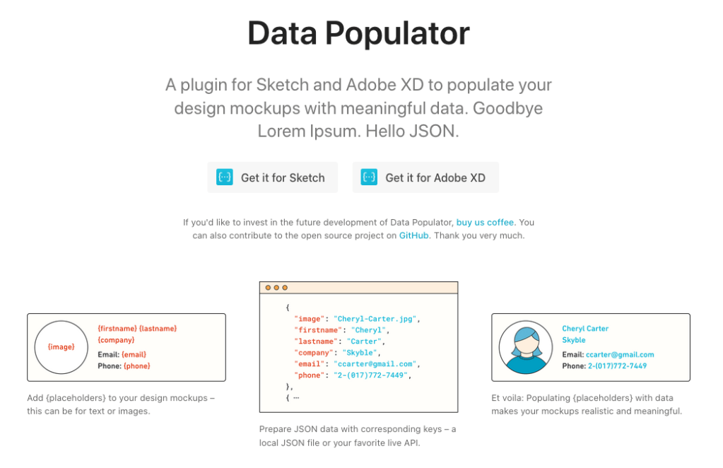 Then on Adobe XD we have to use the Data Populator plugin to update the mock-up with the Populate button