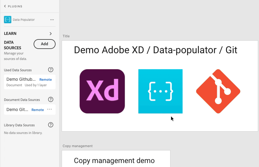 - Git: https://github.com/yannloup/XD-datapopulator/blob/main/demo.json